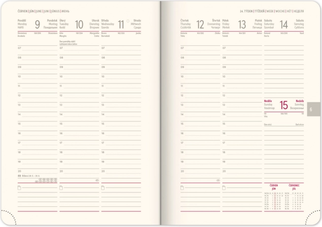 Nedēļas plānotājs Notique Twill 2025 elegantā zilā-sudrabainā tonī ir ideāls palīgs jūsu ikdienas organizēšanai. Tas piedāvā pārskatāmu nedēļas izkārtojumu ar čehu-slovāku kalendāru un daudzvalodu apzīmējumiem.