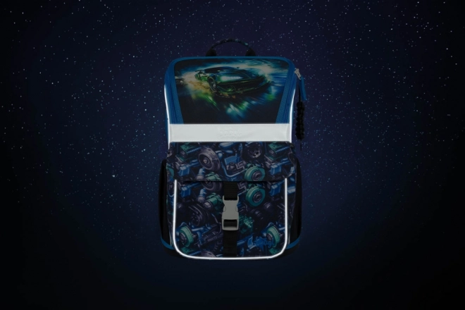Praktisks un stilīgs komplekts ar sacīkšu auto motīvu atvieglos katru skolas dienu. Ergonomiski veidota aktovka ar slīdošu muguras sistēmu ERGO ADJUSTABLE SYSTEM precīzi pielāgojas bērna augumam, savukārt regulējamās plecu, krūšu un sānu kompresijas siksnas nodrošina komfortu un pareizu slodzes sadalījumu.
