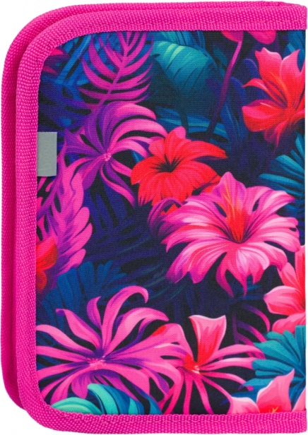 Košs flamingu un tropisko ziedu apdruka rozā–zilajos toņos piešķir penālim rotaļīgu izskatu, kas iepatiksies bērniem.