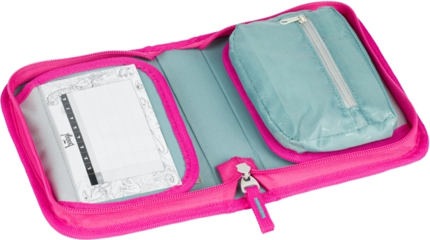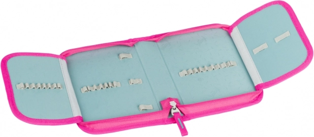 Divas atloka daļas, elastīgas cilpiņas un kabata ar rāvējslēdzēju notur rakstāmpiederumus savā vietā. Viss ir pārskatāms un uzreiz pa rokai, atverot penāli.