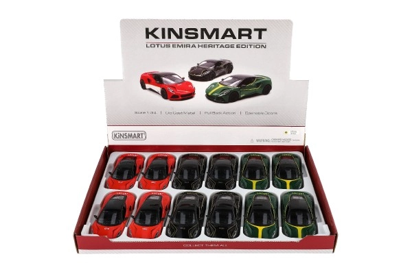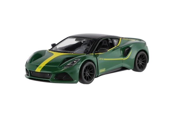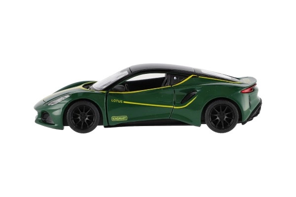 Kinsmart LOTUS Emira automašīnas modelis mērogā 1:38 piedāvā reālistisku izpildījumu ar uzsvaru uz detaļām. Metāla virsbūve kombinācijā ar plastmasas detaļām nodrošina izturību, savukārt atvilkšanas mehānisms sniedz izklaidi braukšanas laikā. Atveramās durvis ļauj ieskatīties salonā un pastiprina autentisko pieredzi.