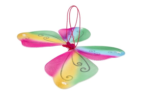 Šie krāsainie tauriņa spārni ir lieliski piemēroti visiem mazajiem pētniekiem un kostīmu entuziastiem. Spārni viegli piestiprināmi ar elastīgām gumijām un ir īstais aksesuārs jebkurai bērnu karnevāla ballītei vai iedomu spēlei.