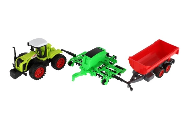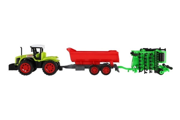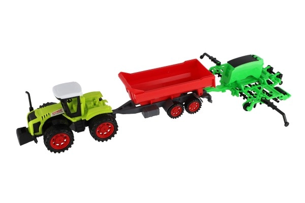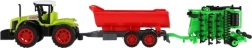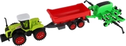 Ar spilgti zaļu traktoru un kontrastējoši sarkanu piekabi un vārtiem rotaļlieta piesaista bērnu uzmanību un veicina viņu radošumu.
