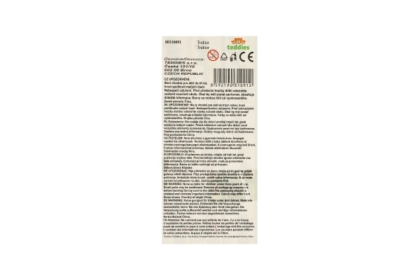 Traktors ir izgatavots no kvalitatīviem materiāliem, kas nodrošina izturību un drošību, padarot to ideāli piemērotu bērnu spēlēm un motorikas prasmju attīstīšanai.