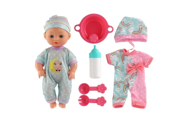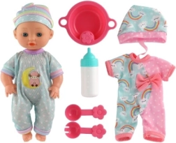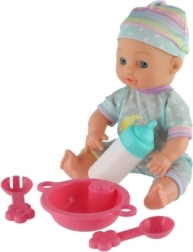 Iepakojumā atradīsiet pilnu ēdināšanas komplektu ar pudelīti, bļodiņu, tējkaroti un dakšiņu, kā arī papildu apģērbu pārģērbšanai. Spēle ar lelli attīsta sīkās motorikas prasmes, fantāziju un māca bērniem atbildību aizraujošā veidā.