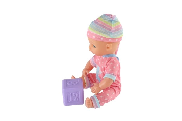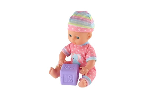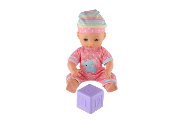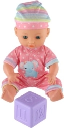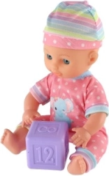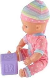 Mīļš mazulis ar stingru plastmasas ķermenīti iepriecinās katru mazo māmiņu. 25 cm lielā lelle ir tērpta rozā apģērbā, komplektā iekļauts arī spēļu kauliņš. Ideāli piemērota iztēles un lomu spēļu attīstīšanai, veicina bērnu sīko motoriku un rūpju prasmes.
