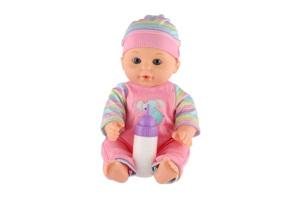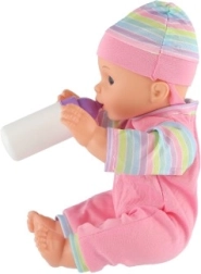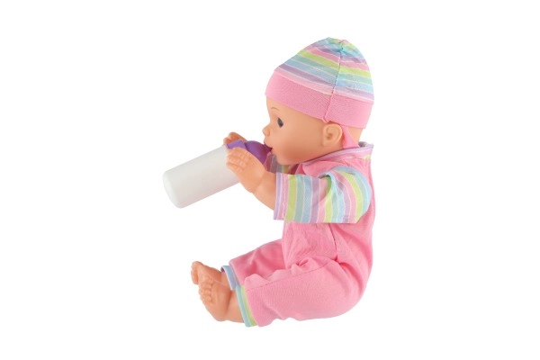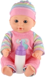 Komplektā ir pudelīte, ar kuru bērni var izmēģināt mazuļa barošanu un attīstīt aprūpes prasmes.