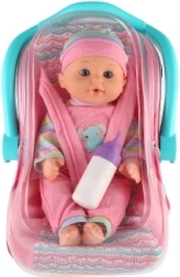 Šī detalizēti veidotā lelle-mazulis 30 cm izmērā ir ērta autokrēsliņa/pārnēsājamā sēdeklīša komplektā ar pārvietojamu rokturi. Bērni var mazuli droši piesprādzēt, pārnēsāt un pabarot ar pievienoto pudelīti — gluži kā īsti vecāki. Spēle veicina sociālās prasmes, empātiju un smalko motoriku.