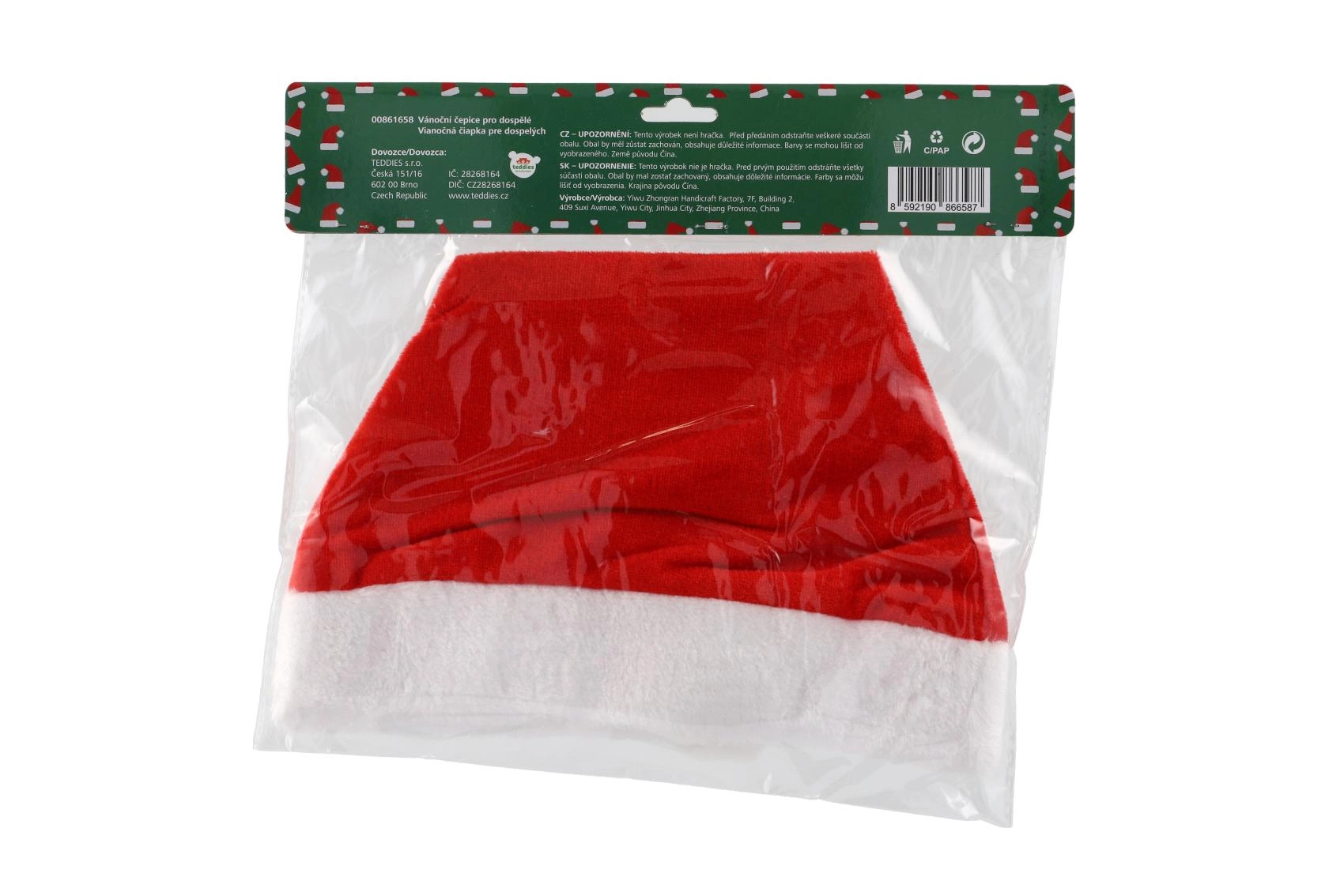 Šī tradicionālā sarkanā cepure ar gaišu, kažokādas tipa maliņu un balto bumbiņu ir neaizstājams aksesuārs adventes laikā. Pateicoties patīkamajai tekstila apdarei, tā ērti nēsājas visu vakaru un lieliski sader gan ar Ziemassvētku kostīmiem, gan ikdienas apģērbu.