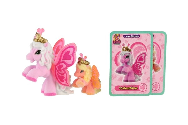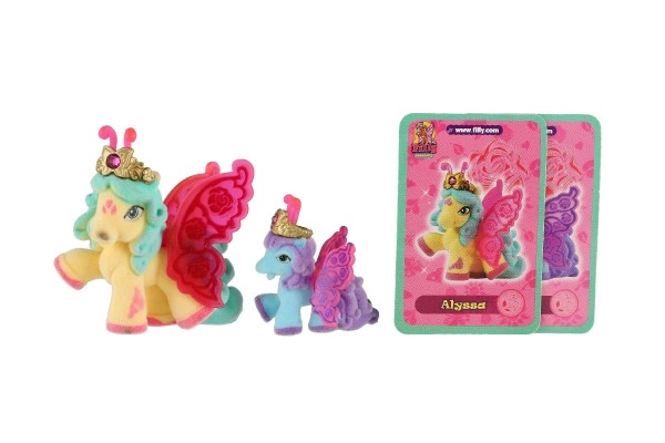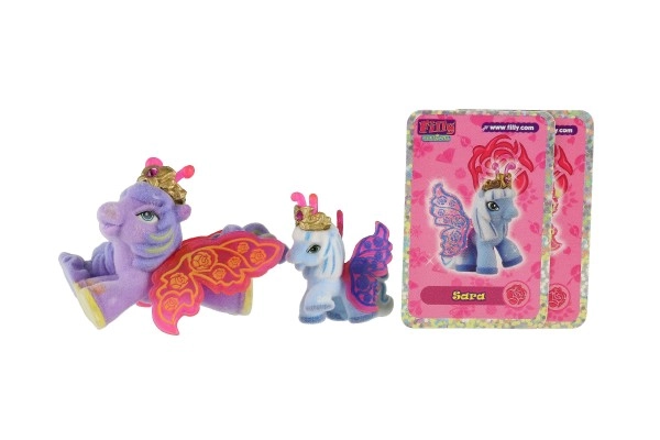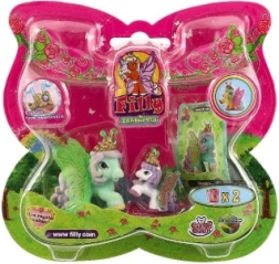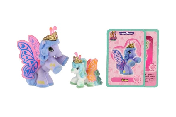 Filly Butterfly komplekts piedāvā divus valdzinošus ponijus ar spārniņiem un kronītēm, kas iemirdzēsies jebkurā bērnu karaļvalstī. Pateicoties maigu materiālu un krāsainu detaļu apvienojumam, figūriņas ir lieliski piemērotas radošai stāstu veidošanai un bērnu fantāzijas attīstīšanai.