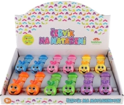 Pagrieziet skrūvīti sānos, un tārpiņš pats dosies uz priekšu. Vienkāršs mehānisms, kas bērniem patīk atkal un atkal.