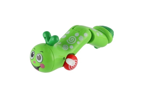 Šis krāsainais uztinamais tārpiņš ir lieliska izvēle pirmajai kustīgajai rotaļlietai. Pietiek pagriezt sānos esošo uztinamo skrūvīti, un tārpiņš sāk kustēties – rāpo uz priekšu, mīlīgi šūpojas un motivē bērnus aktīvai spēlei.