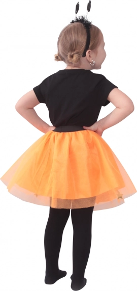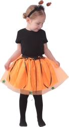 Piešķiriet mazajai modes cienītājai izcilu izskatu katrā Halovīna ballītē. Šis tērps raksturīgajās oranži–melnajās krāsās izceļas ar pūkainiem tutu svārkiem un perfekti saskaņotu matu stīpiņu ar mīlīgiem ķirbīšiem. Pateicoties elastīgajai jostai, svārkus ir viegli uzvilkt un ērti valkāt.