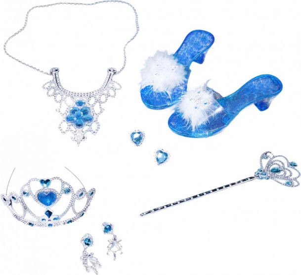 Kļūsti par ziemas princesi ar šo satriecošo aksesuāru komplektu, kurā ietilpst greznas kurpītes, skaista kronīte, žezls, apburoša kaklarota ar auskariem un gredzenu.