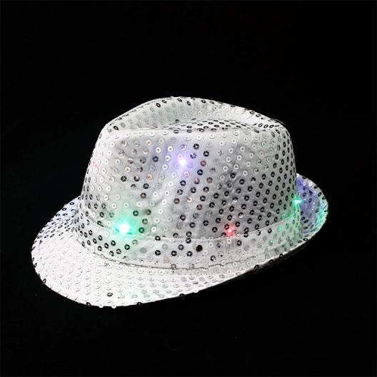 Iekustini jebkuru ballīti ar šo stilīgo sudraba disko cepuri! Fliterēta virsma un krāsaini mirgojošs LED apgaismojums ar trim režīmiem padara to par nepalaid garām aksesuāru. Vadība ir vienkārša, pateicoties neuzkrītošai sānu pogai, un komplektā iekļautas 3 LR44 baterijas.