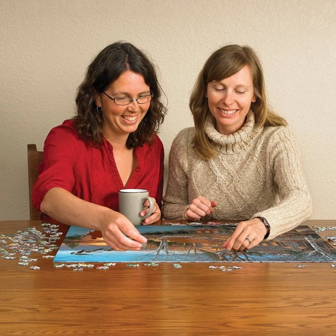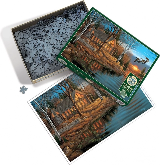 Atmosfērisks klusās ezera mājiņas motīvs saulrietā iepriecinās ikvienu dabas un atpūtas cienītāju. 1000 gabalu COBBLE HILL puzle izceļas ar neregulārām gabaliņu formām, kas nepakļaujas standarta režģim – likšana ir gan jautrāka, gan nedaudz grūtāka.