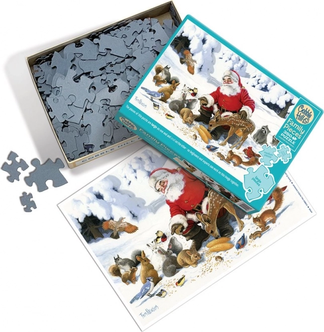 Atklājiet Ziemassvētku burvību ar ģimenes puzli COBBLE HILL “Santa ar dzīvnieku draugiem”. Pateicoties trim gabaliņu izmēriem, katrs var atrast sev piemērotu tempu, un likšana kļūst par patīkamu ģimenes nodarbi. Lielie gabaliņi ir piemēroti mazākiem bērniem, vidējie – skolas vecuma bērniem un vecvecākiem, bet mazie – pieredzējušākiem licējiem.