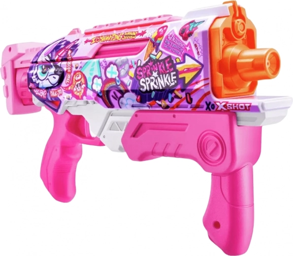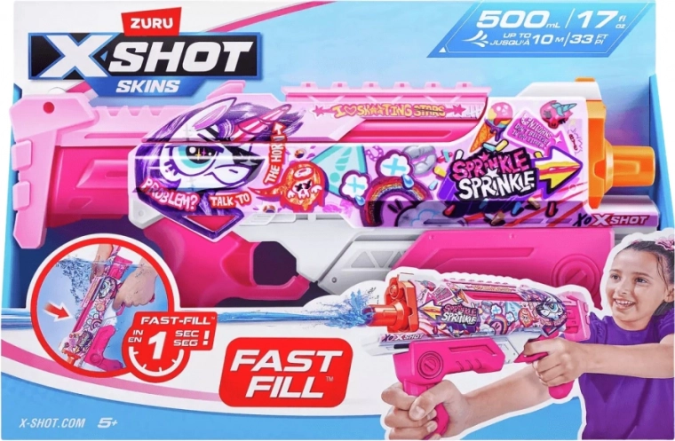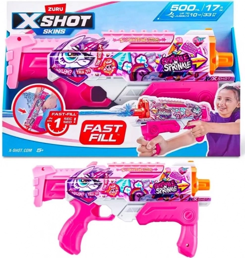 Stilīgā ūdens pistole ZURU X-Shot Skins Fast-Fill rozā krāsā apbur ar modernu izskatu un lielisku veiktspēju. Ātra ūdens papildināšana 1 sekundes laikā un precīza šaušana līdz 10 metriem padara to par ideālu rotaļlietu dārzā, pludmalē vai atvaļinājumā.