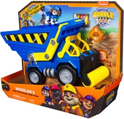 Interaktīvā pašizgāzēja kravas mašīna Wheeler no iemīļotā seriāla Rubble & Crew sniedz bērniem reālistisku būvniecības izklaidi. Iesēdinot figūriņu kabīnē, pietiek transportlīdzekli piespiest, lai ieslēgtos iespaidīgi gaismas un skaņas efekti kā seriālā. Iekraujiet materiālu, izberiet kravu no kastes un izlīdziniet segumu ar priekšējo veltni – tieši kā īstā būvlaukumā.