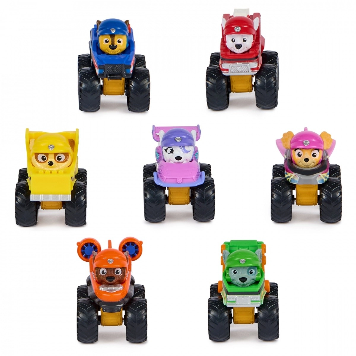Atklāj pilno PAW PATROL varoņu komplektu ar izturīgajiem Pup Squad mini sacīkšu auto. Katram sunītim ir savs autentiskais “Lielie riteņi” tērps, un aerodinamiskais izskats rada sajūtu, ka tas traucas pilnā ātrumā – tieši kā uz lielā ekrāna. Ideāls izmērs rokai, gluda riteņu brīvgaita un izturīgs izpildījums sola stundām ilgu izklaidi mājās un ceļā.