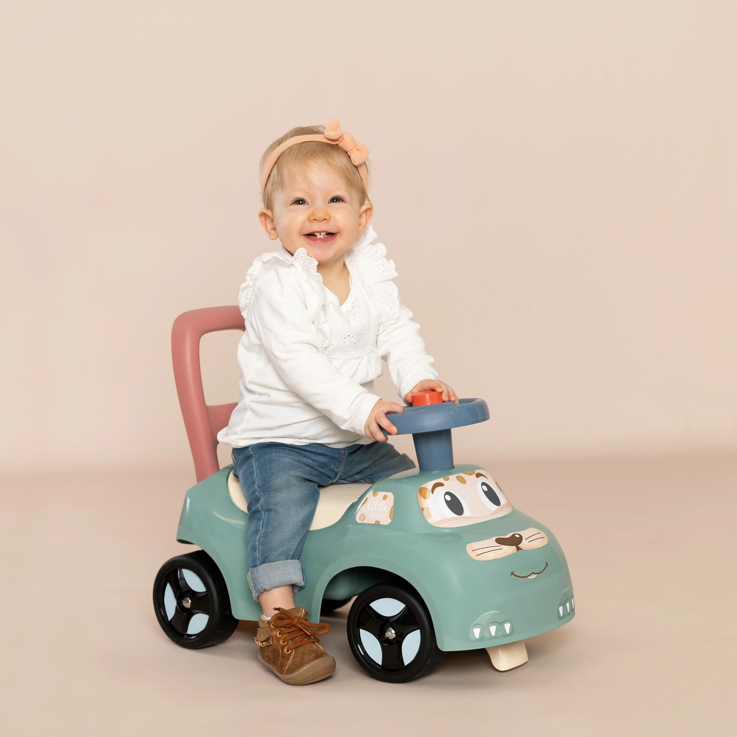 Little SMOBY stumjamā mašīnīte un staigulis ir lieliska pirmajiem soļiem un pirmajām braukšanām. Bērns var pieturēties pie augstās atzveltnes ar rokturi vai patstāvīgi stumt ar kājiņām. Kompaktā konstrukcija un stabilie riteņi nodrošina ērtu un drošu lietošanu gan iekštelpās, gan ārā.