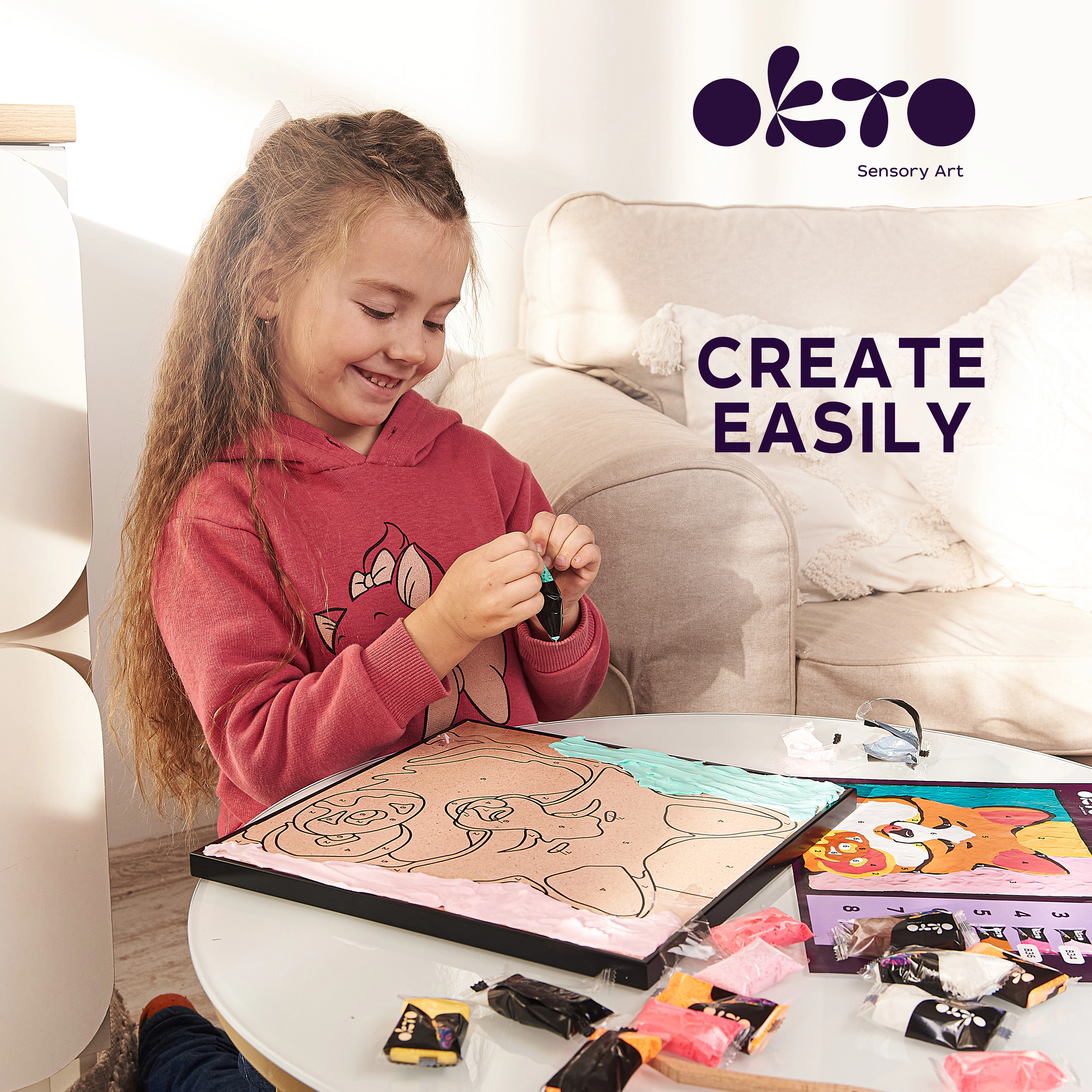 Atklājiet radošuma prieku ar OKTO lapsas mākslas komplektu. Tas apvieno pirkstu gleznošanu un modelēšanu no pašsacietējošas masas, lai viegli izveidotu reljefu, oriģinālu attēlu uz kvadrātveida audekla 29 × 29 cm. Komplektā ir iekļautas attēlu instrukcijas, kas vadīs jūs soli pa solim.