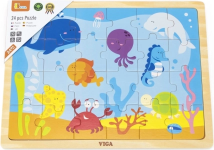 Jautra koka puzle ar zemūdens pasaules motīvu ir ideāla izklaide bērniem. 24 gabaliņu salikšana palīdz attīstīt kognitīvās un motoriskās prasmes.