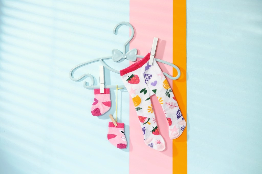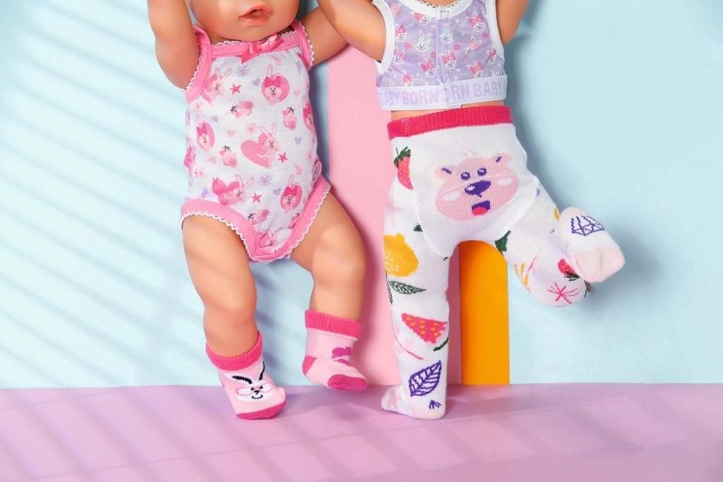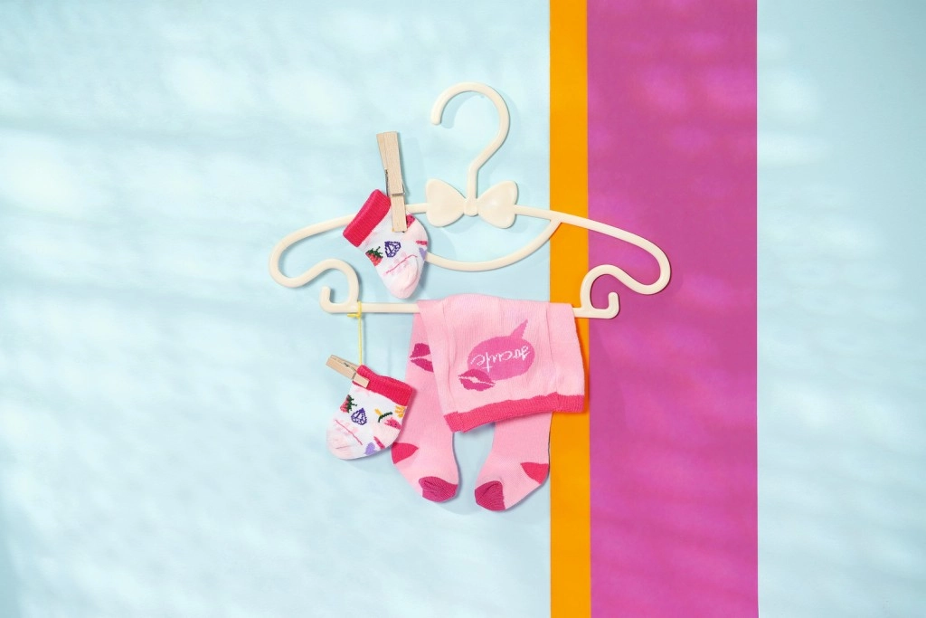 Bagātiniet savas BABY born lelles garderobi ar šīm burvīgajām zeķbiksēm un zeķēm, kas radītas ne tikai siltumam, bet arī modes izpausmei. Ar to pasteļtoņiem tās kļūst par ideālu aksesuāru katrai mazajai māmiņai.