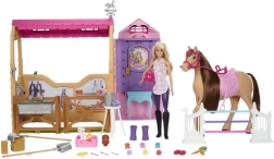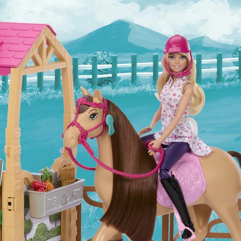 Komplektā ietilpst Barbie lelle jātnieka apģērbā, zirgs ar reālistiskām detaļām un garu mīkstu krēpi, staļļi ar nojumi un bagātīgs aksesuāru komplekts iztēles pilnai spēlei. Ideāli bērniem no 3 gadu vecuma, kuri mīl zirgus, dzīvnieku kopšanu un savu stāstu veidošanu.