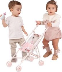 Šie saliekamie leļļu ratiņi maigā dizainā ar guļošas KOALAS motīvu apvieno baltu krāsu ar ziedu apdruku un laša rozā akcentiem. Pateicoties nelielajam svaram un vienkāršai lietošanai, tie ir ideāli mazākiem bērniem un ikdienas rotaļām.