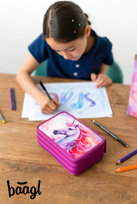 Stilīgais fantastiskā vienradža motīvs un praktiskais dizains padara šo penāli par lielisku izvēli ikvienam skolēnam.