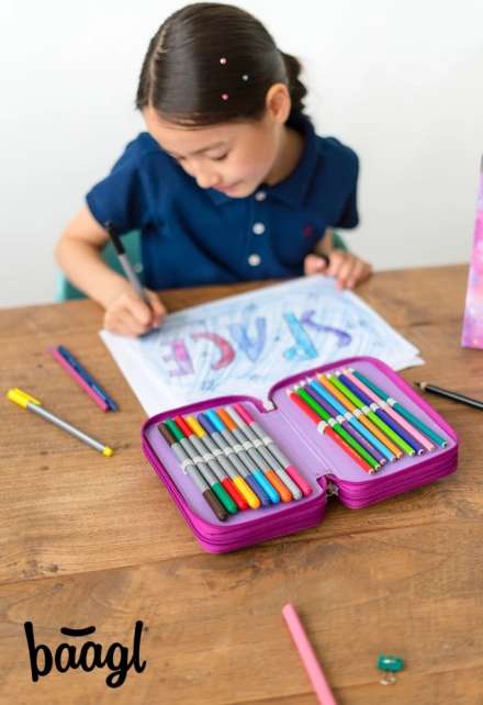 Uzlabojiet savu skolas komplektu ar trīsdaļīgu penāli, kas piedāvā pietiekami daudz vietas visām jūsu krītiņiem, flomāsteriem un citām skolas lietām. Penālis ir aprīkots ar gumijām, kas der arī biezākām rakstāmlietām, lai nodrošinātu kārtību un ērtu piekļuvi.