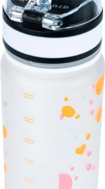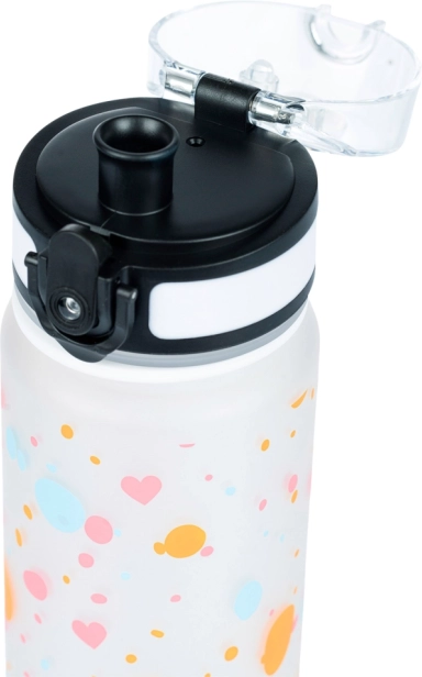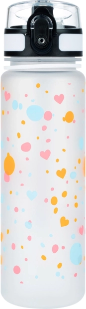 Stilīga 500 ml tritāna pudele ar sirsniņu motīvu ir ideāla skolai, sportam un izbraucieniem. Tā piedāvā necaurlaidīgu, aizslēdzamu vāciņu, praktisku nesšanas siksniņu un iekšējo sietiņu augļiem vai tējai. Izgatavota no droša BPA nesaturoša tritāna, bez smaržas un piemērota arī karstiem dzērieniem.