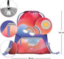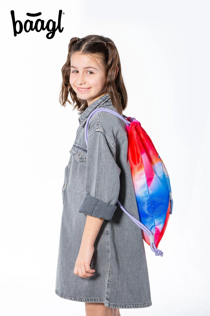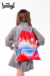 Praktisks un stilīgs maisiņš no zīmola BAAGL apaviem un brīvā laika aktivitātēm pievilcīgā sarkanā dizainā ar varavīksnes motīvu. Piedāvā izturīgu, viegli kopjamu (mazgājamu) materiālu, praktisku kabatu ar rāvējslēdzēju un sašņorēšanu ar stiprām auklām ērtai nēsāšanai uz muguras. Pateicoties karabīnei, to viegli piestiprināt pie aktovkas vai mugursomas.