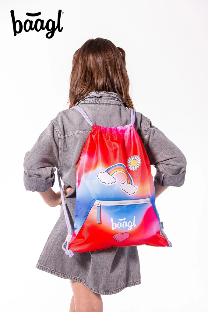 Meklējat uzticamu maisiņu maiņas apaviem, sporta inventāram vai pulciņu lietām? Baagl sarkanais maisiņš ar varavīksnes motīvu ir lieliska izvēle bērniem un pusaudžiem. Tas ir šūts no izturīga un mazgājama materiāla, tāpēc iztur ikdienas lietošanu un ir viegli kopjams.