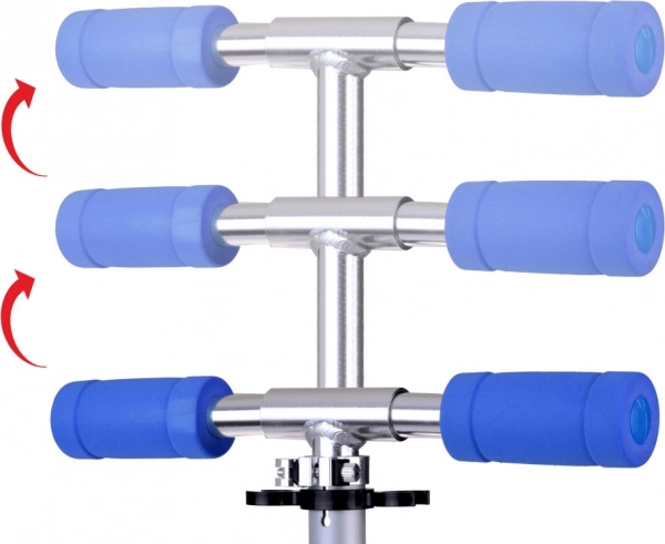 Trīs augstuma iestatījumi nodrošina ergonomisku satvērienu un ērtu vadību dažāda auguma bērniem.