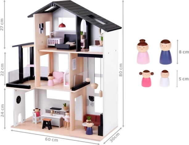 Meklējat ideālu leļļu namiņu, kas attīsta jūsu bērnu radošumu? Šis mūsdienīgs koka namiņš lofta stilā ir īstā izvēle. Izgatavots no kvalitatīvas koksnes ar uzsvaru uz detaļām, namiņš ietver ne vien elegantu viesistabu, modernu virtuvi un mājīgu guļamistabu, bet arī funkcionālu vannas istabu un balkonu.