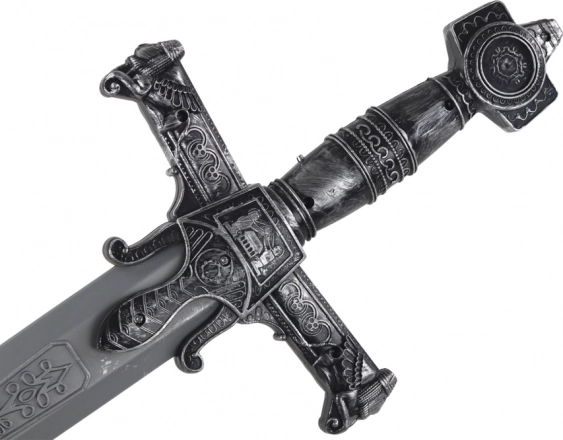 Šis rūpīgi izstrādātais plastmasas zobens piedāvā autentisku viduslaiku izskatu bez asām malām, tādēļ tas ir lieliska izvēle drošai bērnu izklaidei. Rotātais rokturis piešķir zobenam elegantas, vēsturiskas nianses, savukārt kaujas skaņu efekti pastiprina jebkuras piedzīvojumu spēles atmosfēru.