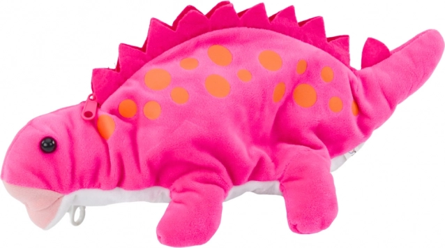 Šis rozā plīša dinozaurs iepriecinās bērnus ar maigu materiālu un pārsteigs ar gudru uzglabāšanas funkciju. Uz muguras tam ir kvalitatīvs rāvējslēdzis, tāpēc tas kalpo kā penālis, kabatiņa sīklietām vai maza somiņa slepeniem dārgumiem.