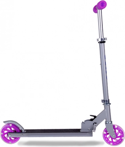 Viegls un izturīgs saliekams bērnu skrejritenis ar LED izgaismotiem riteņiem, regulējamu stūres augstumu un pretbuksēšanas platformu. Viegli saliekams, ērti pārnēsājams un ar pēdas bremžu spārnu drošai braukšanai arī lielākā ātrumā. Ideāli piemērots pastaigām parkā, veloceliņiem un ceļojumiem.