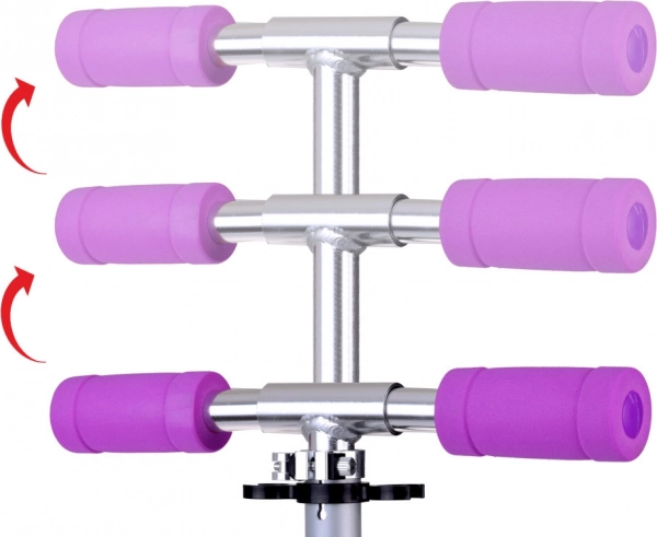 Trīs augstuma līmeņi pareizai pielāgošanai bērna augumam. Mīksti putu rokturi nodrošina drošu un ērtu satvērienu.