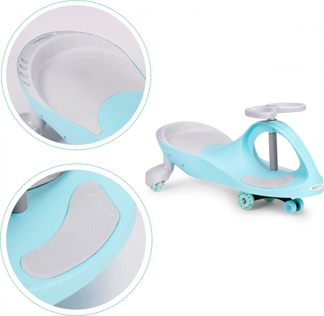 Šī inovatīvā wiggle car tipa atspereņu mašīnīte no zīmola ECOTOYS uzsāk kustību bez mīšanās – pietiek pārmaiņus grozīt stūri pa kreisi un pa labi. Bērni rotaļīgā veidā attīsta līdzsvaru, koordināciju un rupjo motoriku. Pateicoties vieglai un izturīgai konstrukcijai, tā ir ideāli piemērota braukšanai gan iekštelpās, gan ārā.