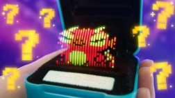 - Zila kastīte ar pikseļu/animētu tēliņu attēlojumu