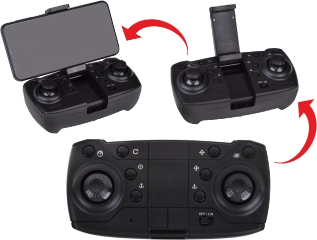 Ergonomiskais tālvadības pults nodrošina precīzu drona kontroli ar daudzām funkcijām, kas atvieglo vadību arī nepieredzējušiem lietotājiem.