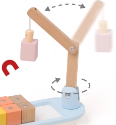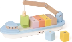 Šis koka kravas kuģis ir pārdomāta rotaļlieta bērniem no 2 gadu vecuma. Komplektā ir 12 magnētiskie bloki un stabils kuģis ar kustīgu celtni, kas ļauj viegli pārvietot “konteinerus”. Pateicoties gludajām formām un kvalitatīvam kokam, rotaļa ir droša un patīkama pieskārienam.