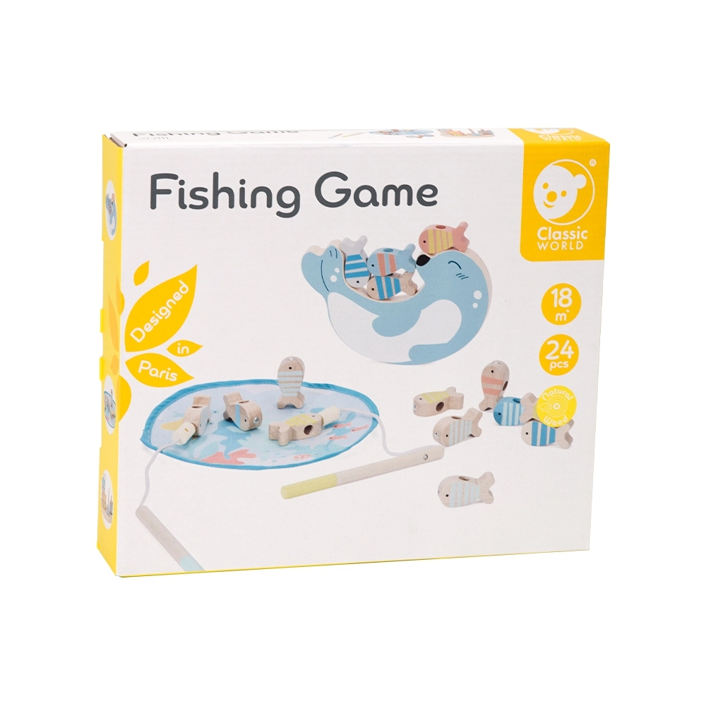 Atklājiet jautru un izglītojošu bērnu spēli – koka zivtiņu makšķerēšanu no CLASSIC WORLD. Šis gudrais komplekts piedāvā 3 spēles 1: zivtiņu makšķerēšanu ar magnētu, balansēšanas spēli un zivtiņu šķirošanu pēc krāsām un cipariem. Attīsta sīko motoriku, roku–acu koordināciju, koncentrēšanos un krāsu un skaitļu apguvi. Izgatavots no kvalitatīvas koksnes spilgtās krāsās, lieliski piemērots kopīgai ģimenes izklaidei.