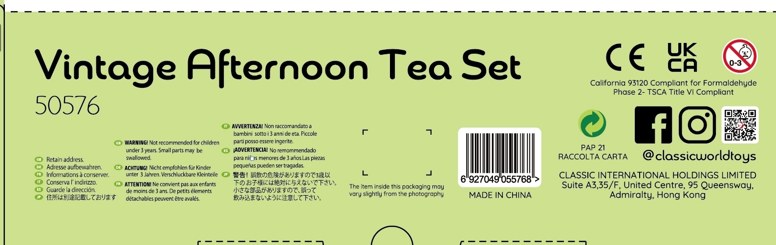Mīlīgais koka tējas komplekts no zīmola CLASSIC WORLD iepriecinās ikvienu mazo saimnieku. Tas ietver visu stilīgai tējas ballītei – no kanniņas un tasītēm līdz paplātēm ar rakstu. Pateicoties izturīgai koka konstrukcijai, pasteļtoņu krāsām un drošam izpildījumam bez asām malām, tas ir ideāli piemērots bērniem no 3 gadu vecuma. Veicina iztēli, lomu spēles un sīko motoriku.