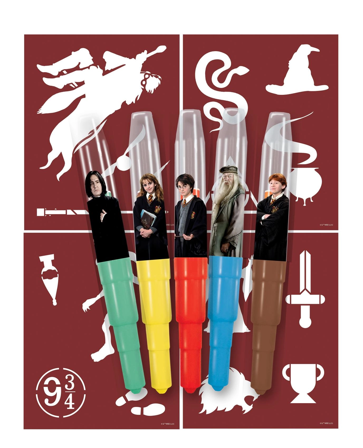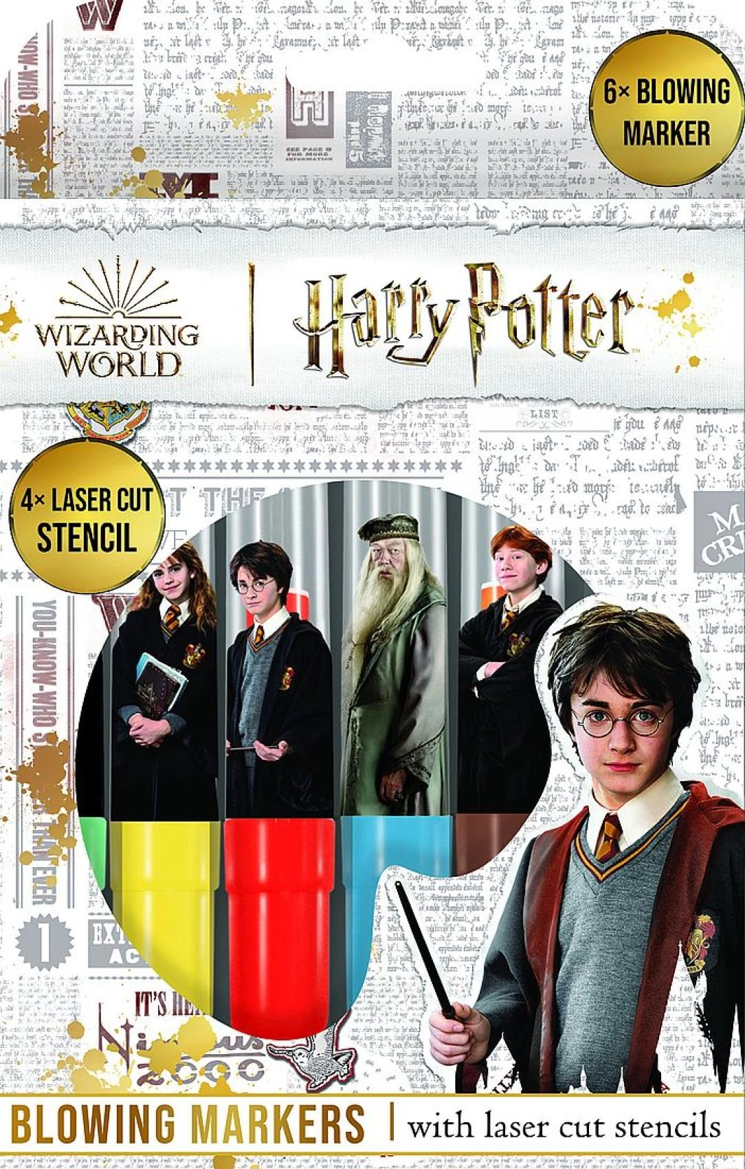 Atklāj radošu izklaidi ar pūšamajiem flomāsteriem un oficiālajiem Harry Potter motīviem. Bērni viegli radīs oriģinālus zīmējumus, izmantojot pievienotos šablonus un vienkāršo pūšanas tehniku, kas veido smalku spreja pārklājumu. Ideāli piemērots mājas radošajiem darbiem, dāvanām un skolas projektiem.