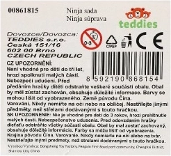 Komplektā ir viss nepieciešamais aprīkojums mazajiem nindzjām, tostarp šurikenes un citi piederumi, lai ikviens varētu kļūt par kaujas meistaru.