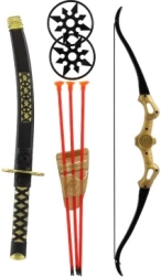 Šis nindzjas komplekts ir ideāls visiem mazajiem piedzīvojumu meklētājiem, kuri vēlas pārvērsties par īstiem nindzju karotājiem. Komplektā ir viss, kas nepieciešams reālistiskai un drošai spēlei, tostarp detalizēts zobens, loks ar piesūcekņu bultām un citi piederumi.